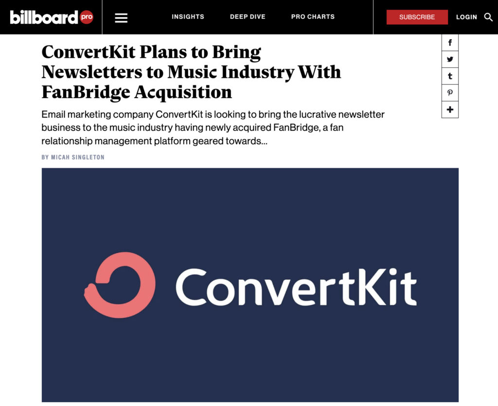 It’s been such a good move for both the FanBridge artists and ConvertKit as a company. Because we grandfathered the existing pricing for a period of time, we won’t see a revenue bump until later this year.