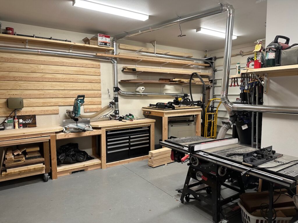 - Built out a woodworking shop in the 3rd bay of the garage. Now it’s fully separate from the rest of our garage and has a finished dust collection system.