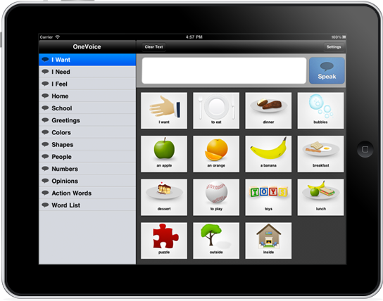 OneVoice represents an impressive leap forward in design and ease of use for augmentative and alternative communication (AAC). Using the iPad touchscreen,