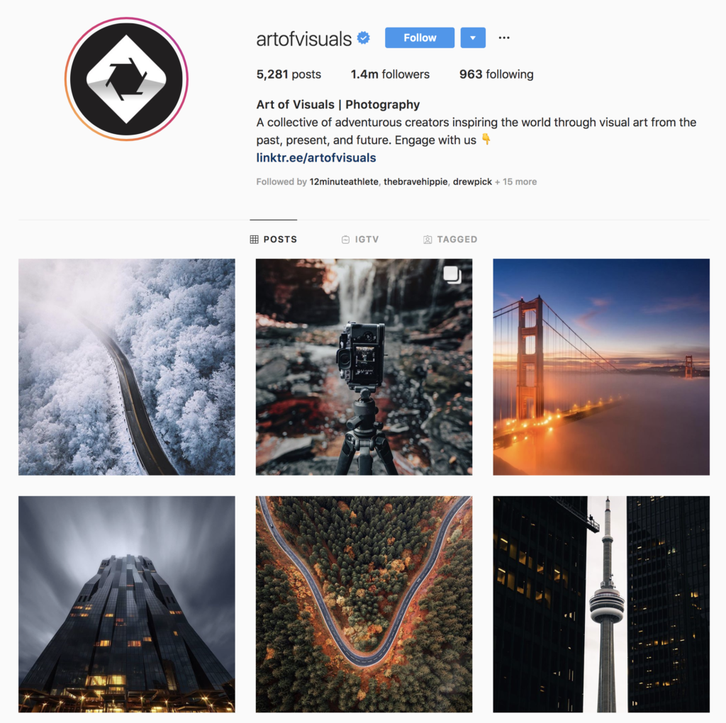 Eventually the community grew with thousands of photographers submitting their own photos to be featured. Now over 1.4 million people follow Art of Visuals and it’s grown into a full brand with a website, products, an email list, and significant revenue!