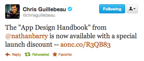 That email was to launch The App Design Handbook, my new book on designing beautiful iOS applications. I’ve been working on it for 3 months and had built up a pre-launch list of 795 people. Sending to that list is what sold the first $1,000 in books so quickly. Since then the sales have increased throughout the day to ~$6,000 where it is as I write this. Let me take you through my process.