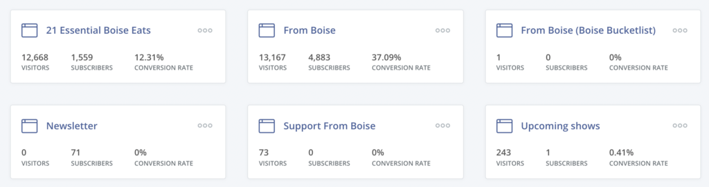 The other two pages are for a partnership with Boise Bucketlist (That hasn’t gone live yet) and then the newsletter opt-in form that goes at the footer of all our issues.