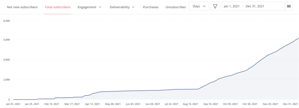 I didn’t write down specific goals for the first year, but roughly in my head I had two: 1) reach 5,000 subscribers and 2) get it profitable.