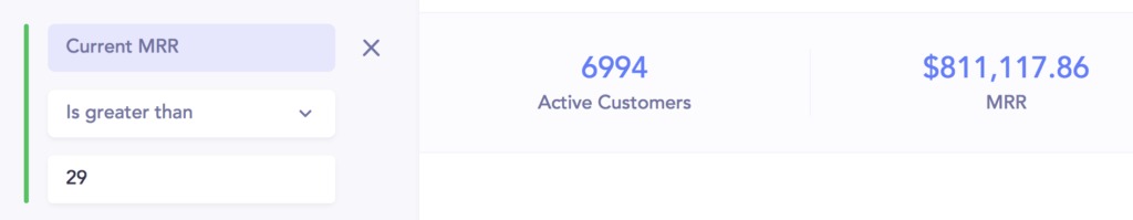 Knowing that we have a lot of customers on the base plan ($29 for 1,000 subscribers), I can do a search for everyone who pays more than $29/month.